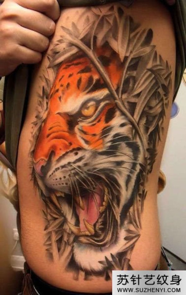 侧腰霸气老虎时尚刺青_腰部纹身图案大全_纹身图吧