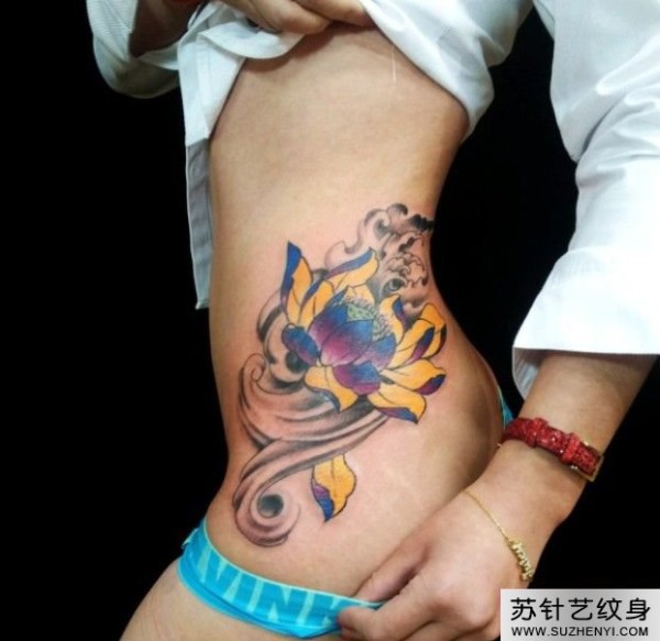 腰部莲花荷叶纹身图案纹身图片_腰部纹身图案大全_纹身图吧