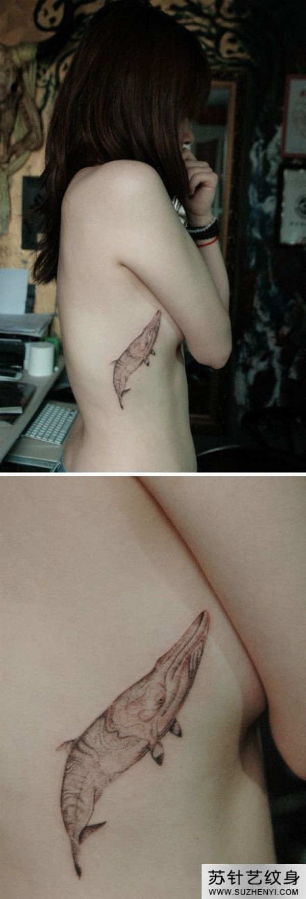 鲸鱼唯美腰部纹身_腰部纹身图案大全_纹身图吧
