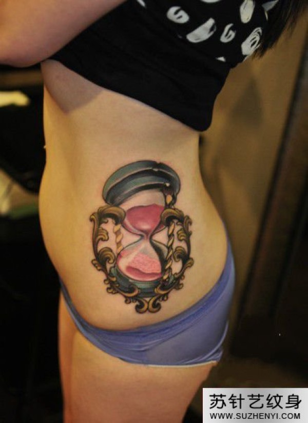 复古沙漏腰部纹身_腰部纹身图案大全_纹身图吧