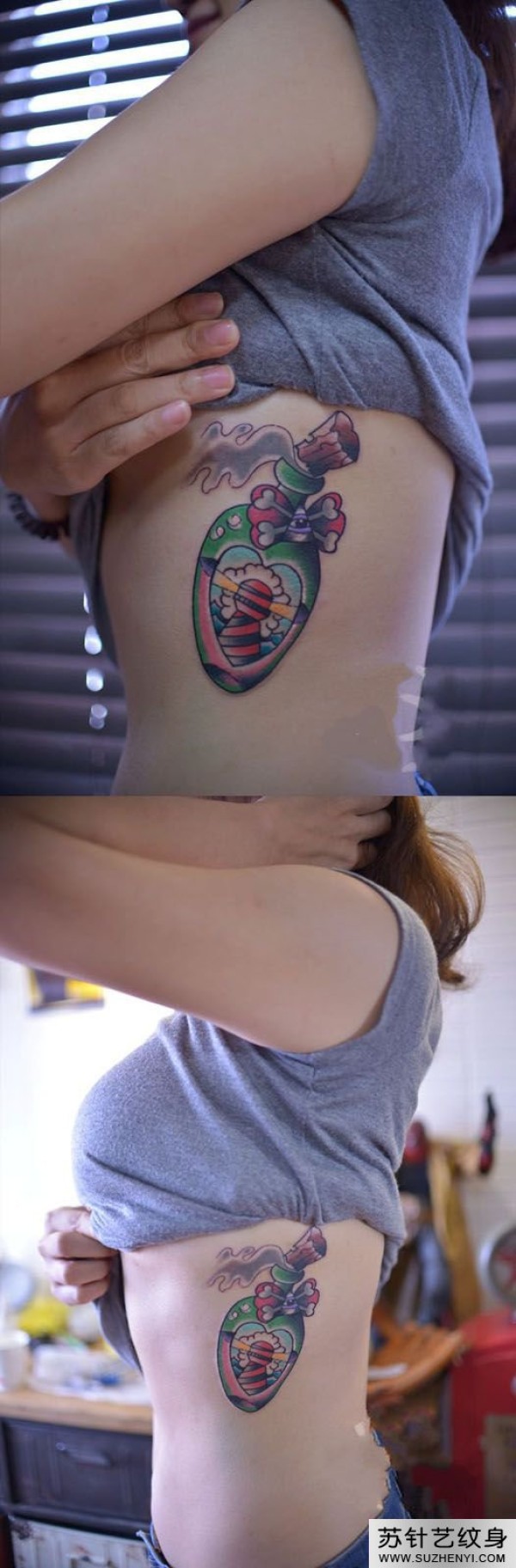 许愿瓶灯塔腰侧纹身_腰部纹身图案大全_纹身图吧