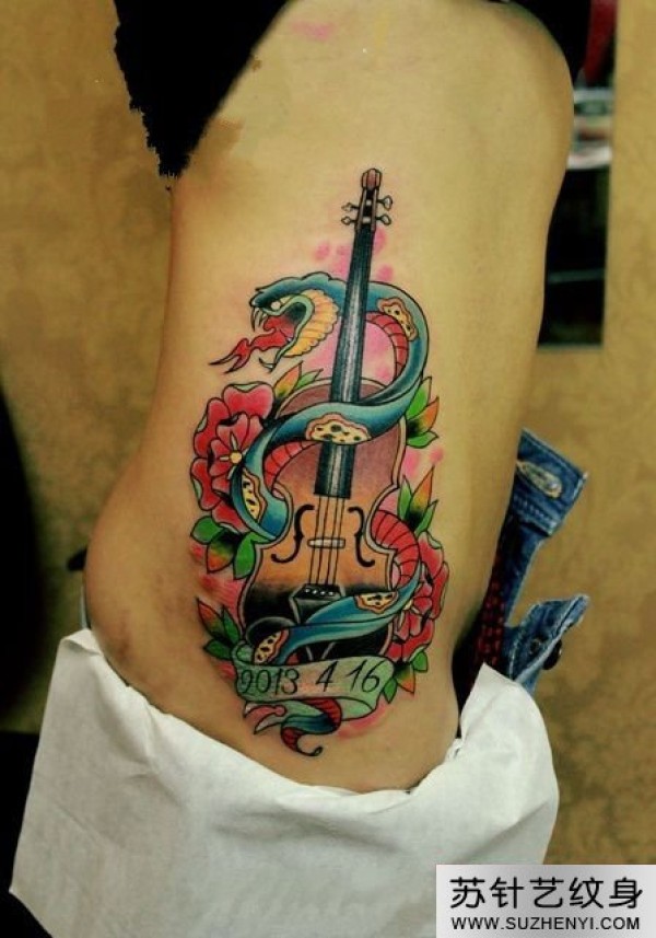 眼镜蛇与吉他腰部纹身_腰部纹身图案大全_纹身图吧