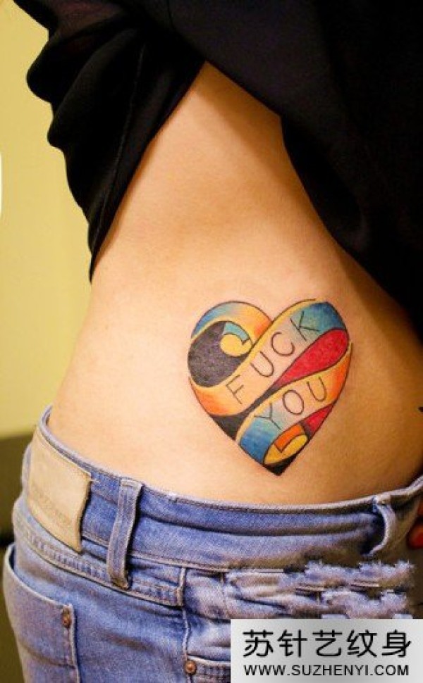 彩虹爱心腰部纹身_腰部纹身图案大全_纹身图吧