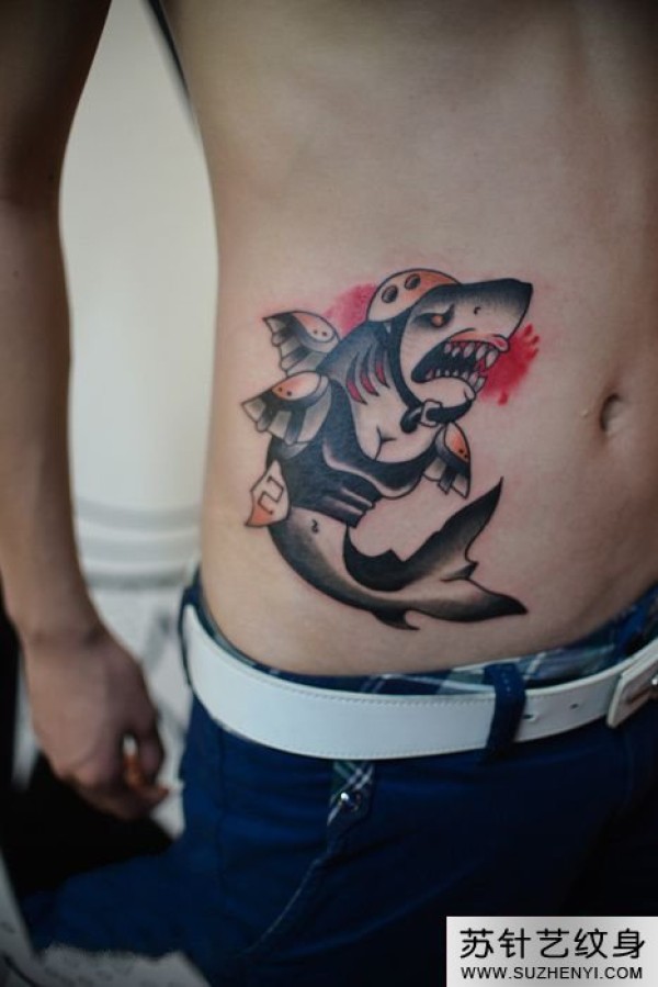 凶猛鲨鱼侧腰纹身_腰部纹身图案大全_纹身图吧