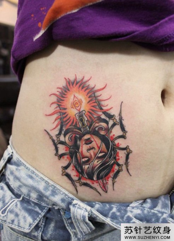 创意蜡烛女腰部纹身_腰部纹身图案大全_纹身图吧