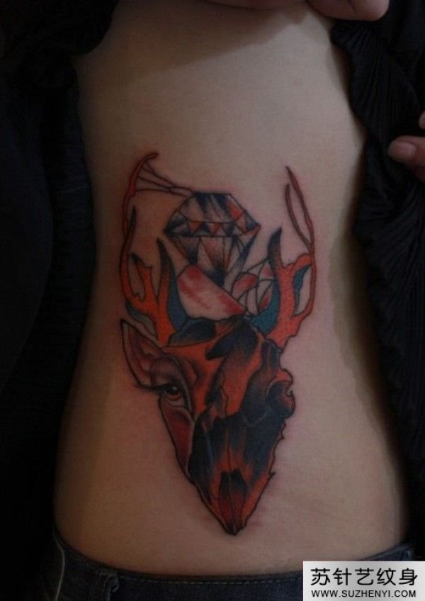 麋鹿钻石腰部纹身_腰部纹身图案大全_纹身图吧