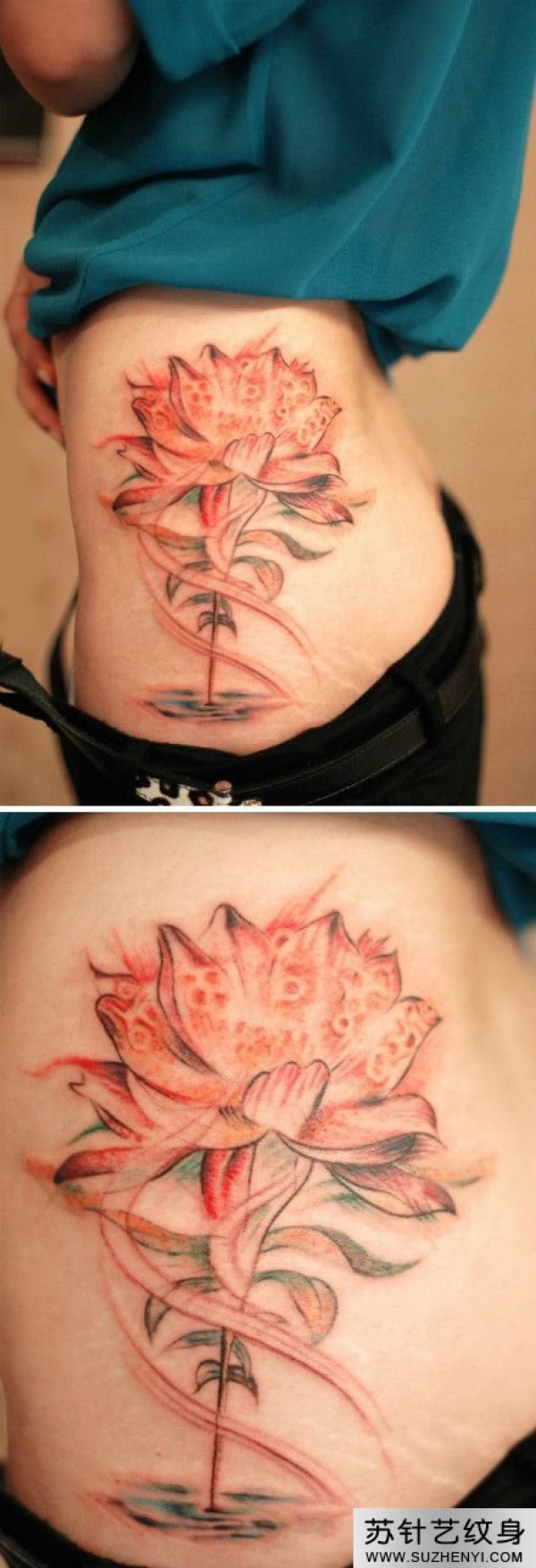 腰部莲花荷叶纹身图案纹身图片_腰部纹身图案大全_纹身图吧