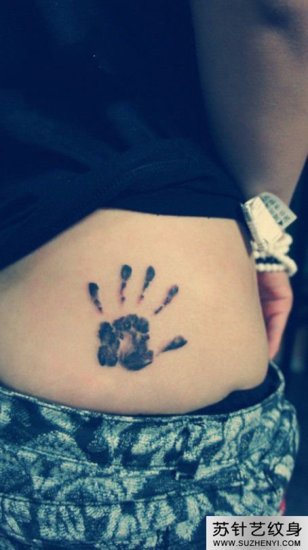 时尚手掌印侧腰纹身_腰部纹身图案大全_纹身图吧