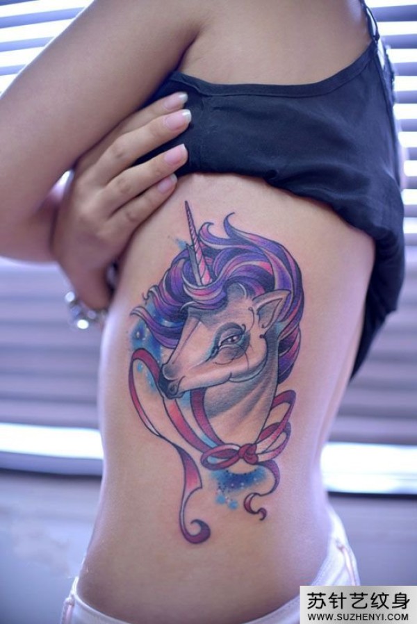 美女侧腰独角兽纹身_腰部纹身图案大全_纹身图吧