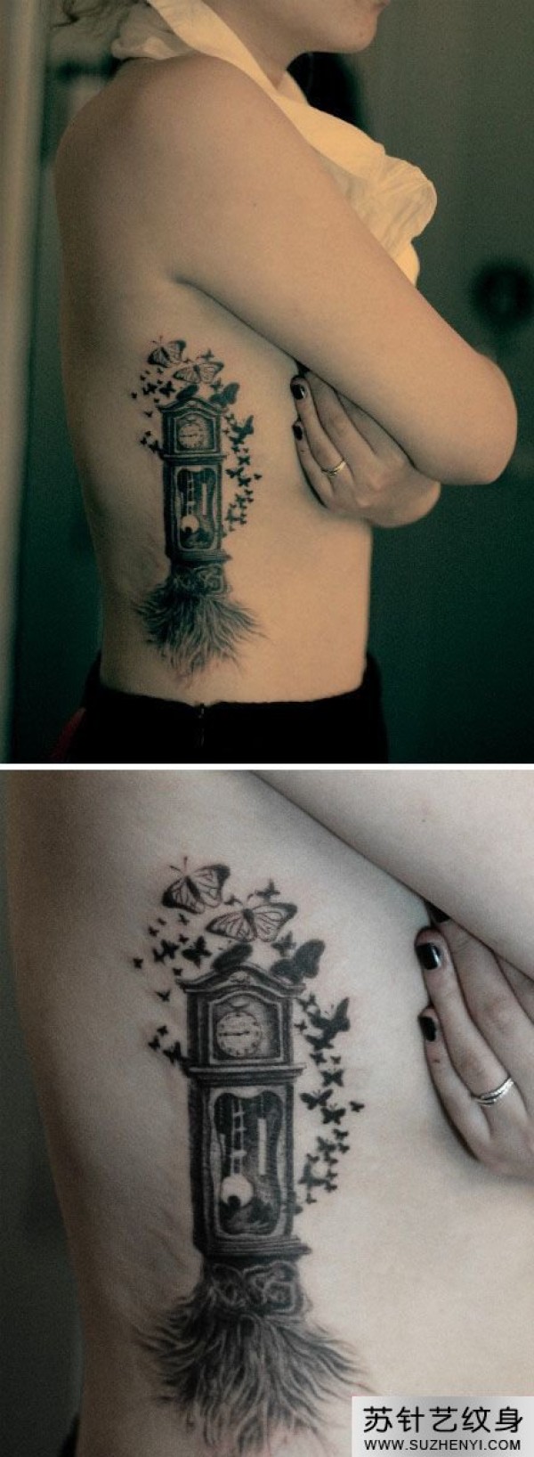 时钟树创意腰部纹身_腰部纹身图案大全_纹身图吧