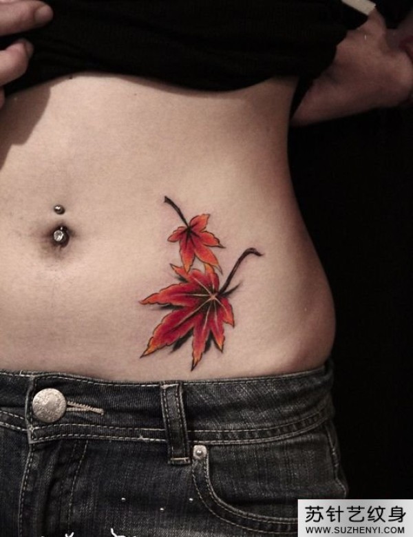 侧腰时尚枫叶纹身_腰部纹身图案大全_纹身图吧