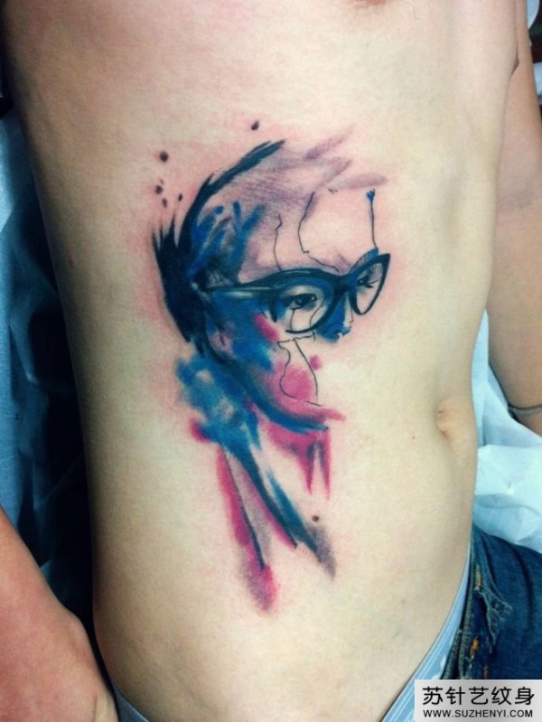 水彩画头像腰部纹身_腰部纹身图案大全_纹身图吧
