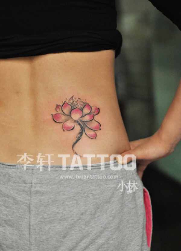 小林作品腰部彩色荷花纹身图案_腰部纹身图案大全_纹身图吧