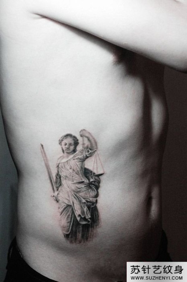 正义女神腰部纹身_腰部纹身图案大全_纹身图吧