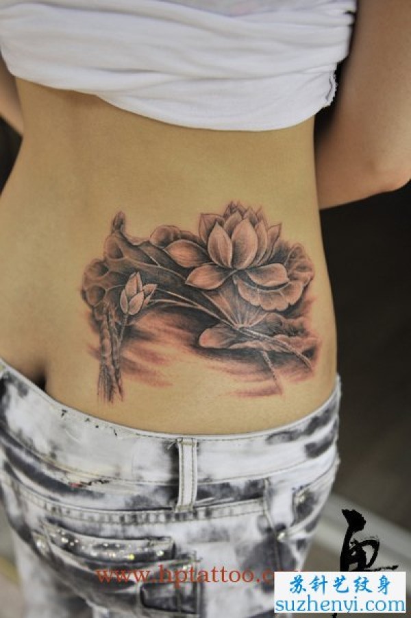 腰部莲花荷叶纹身_腰部纹身图案大全_纹身图吧