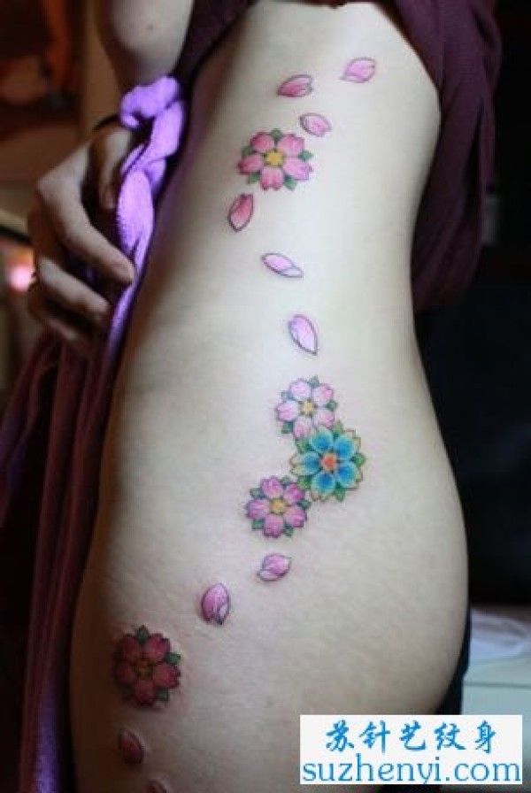 侧腰臀部樱花纹身_腰部纹身图案大全_纹身图吧