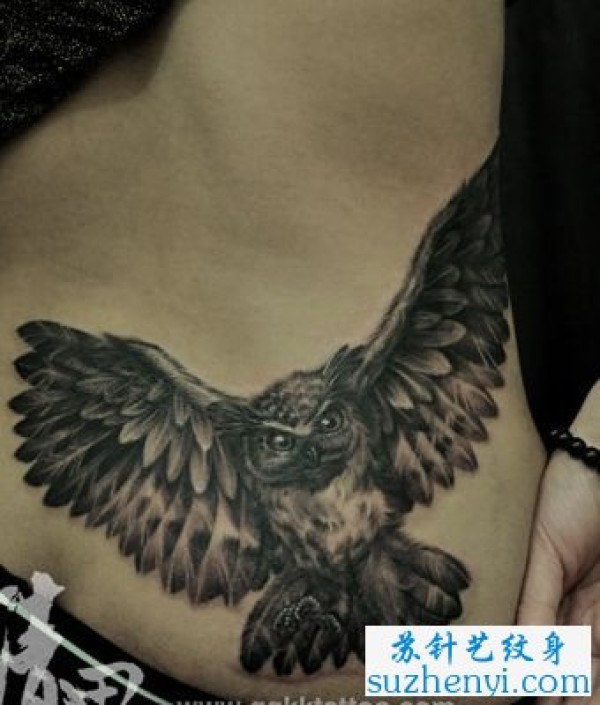 腰部猫头鹰纹身_腰部纹身图案大全_纹身图吧