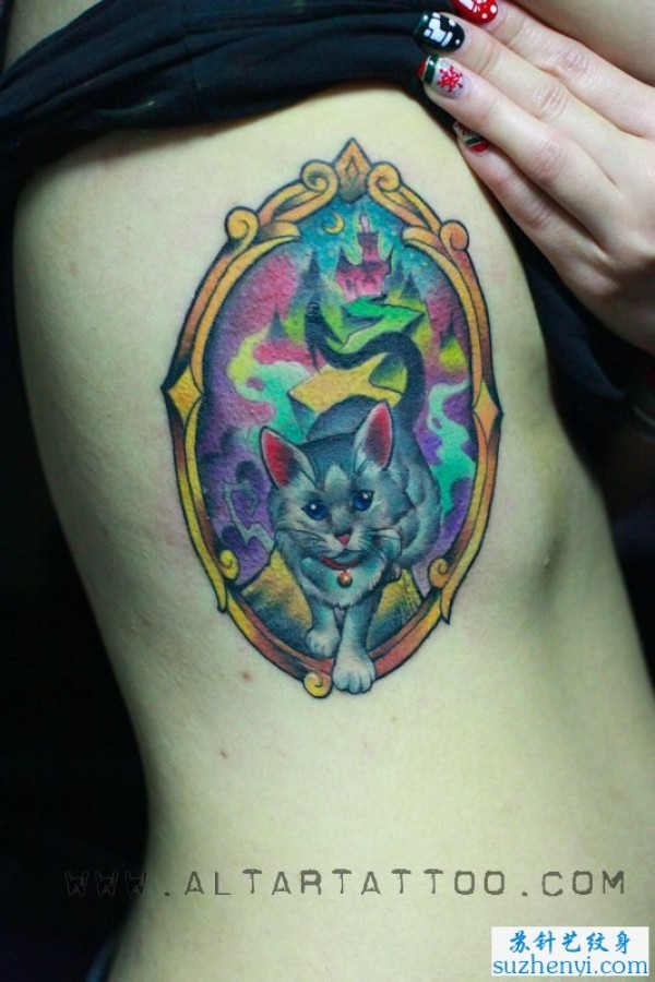 侧腰猫咪纹身_腰部纹身图案大全_纹身图吧
