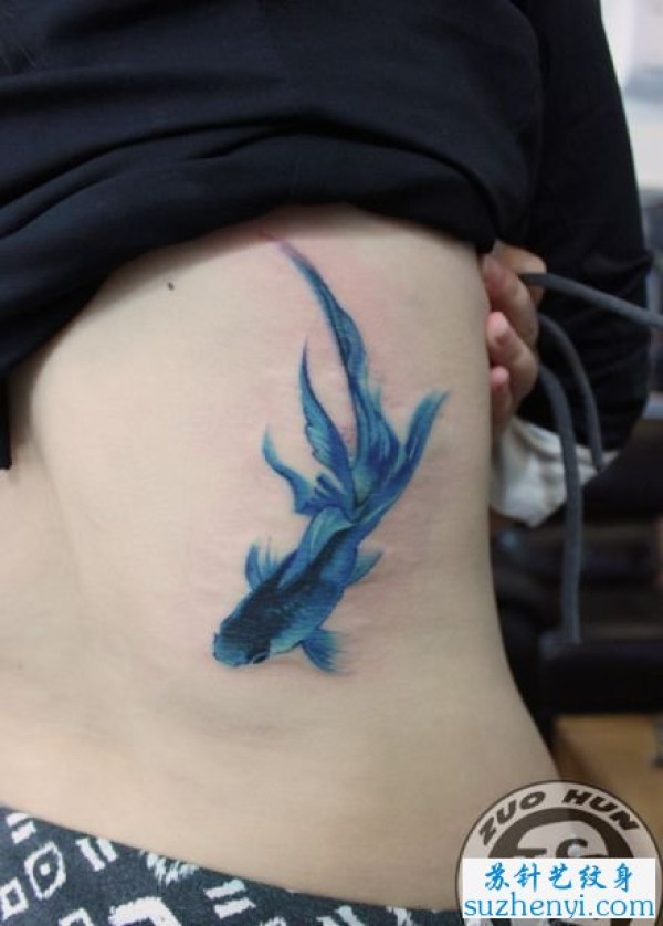 侧腰一枚彩色小金鱼纹身图案_腰部纹身图案大全_纹身图吧
