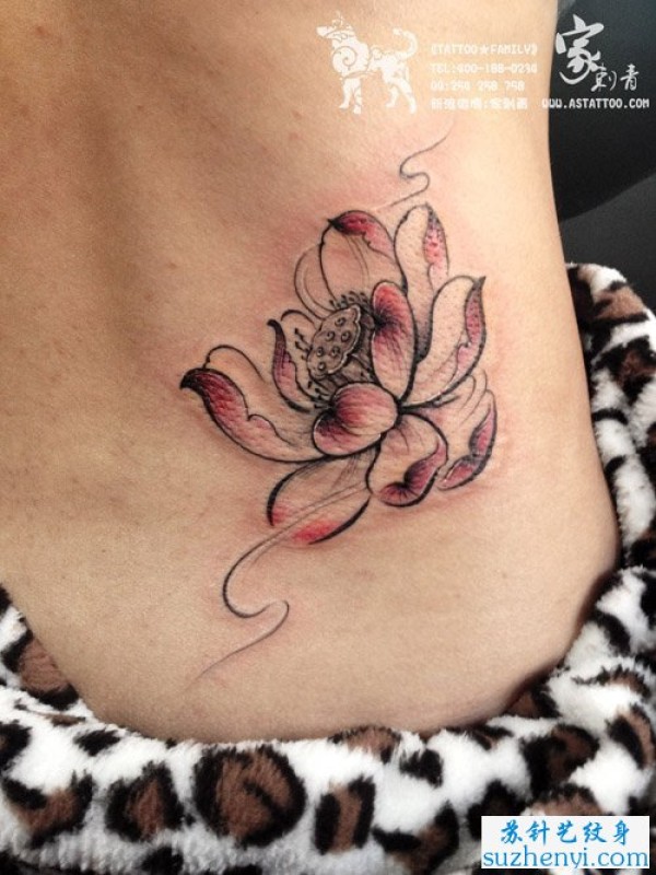 腰部唯美的莲花纹身_腰部纹身图案大全_纹身图吧