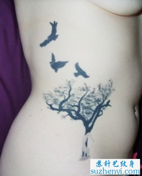 侧腰小树与小鸟纹身_腰部纹身图案大全_纹身图吧