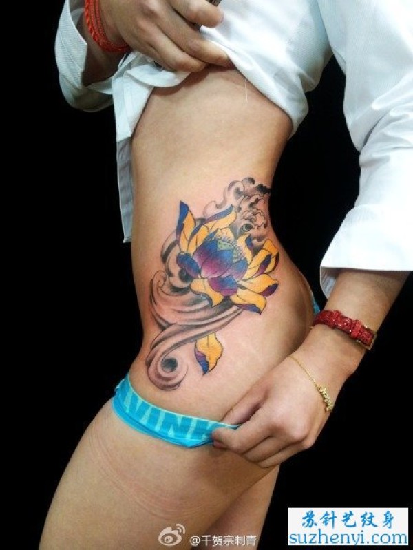 侧腰精美的莲花纹身_腰部纹身图案大全_纹身图吧