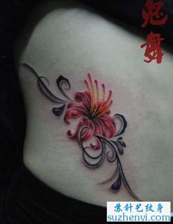 腰部彩色百合花纹身_腰部纹身图案大全_纹身图吧