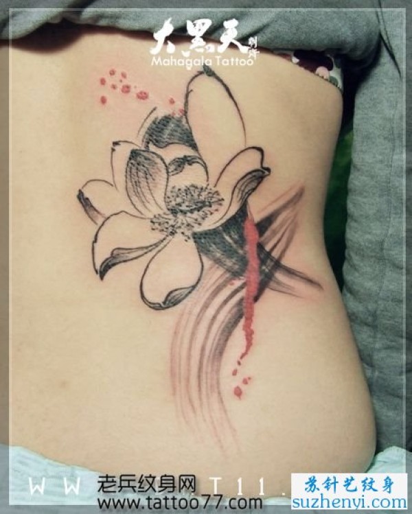 腰部水墨画莲花纹身_腰部纹身图案大全_纹身图吧