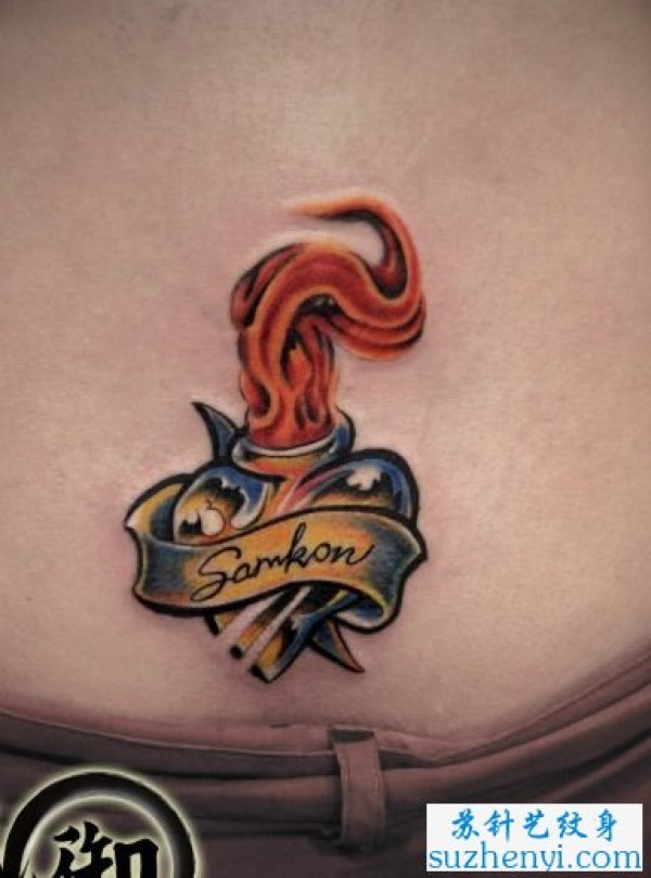 腰部爱心油灯火焰纹身_腰部纹身图案大全_纹身图吧