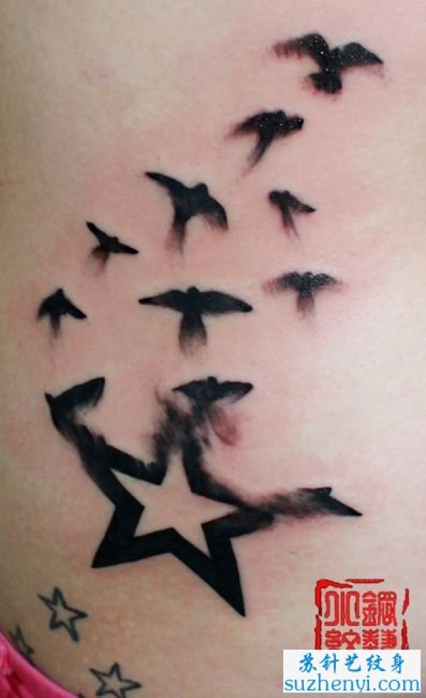 腰部五角星化小鸟纹身_腰部纹身图案大全_纹身图吧