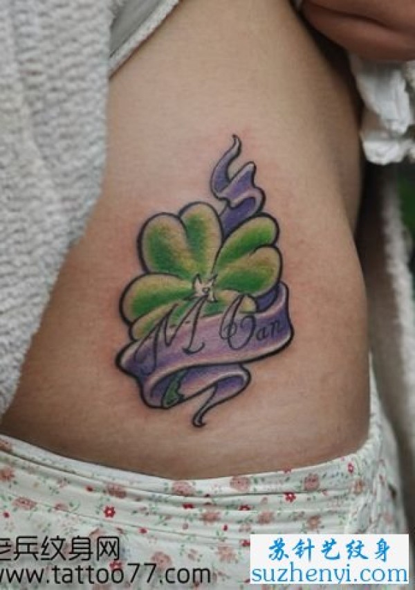 美女腰部四叶草纹身_腰部纹身图案大全_纹身图吧