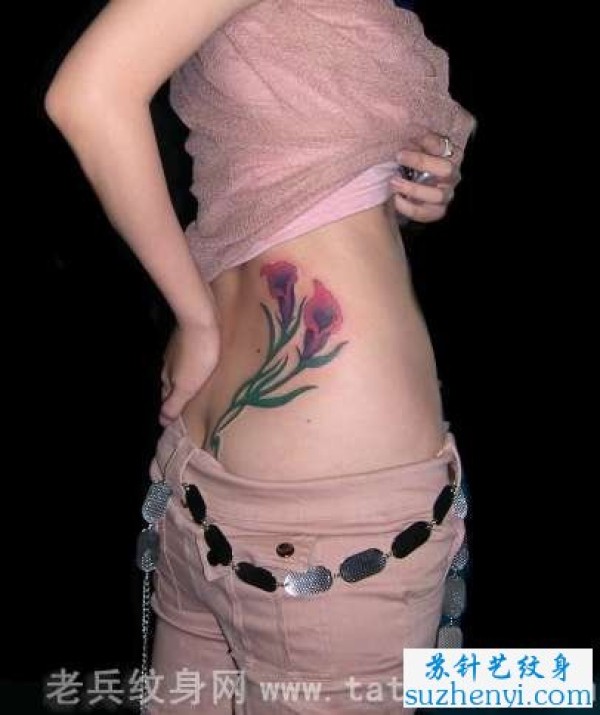 腰部彩色郁金香纹身_腰部纹身图案大全_纹身图吧