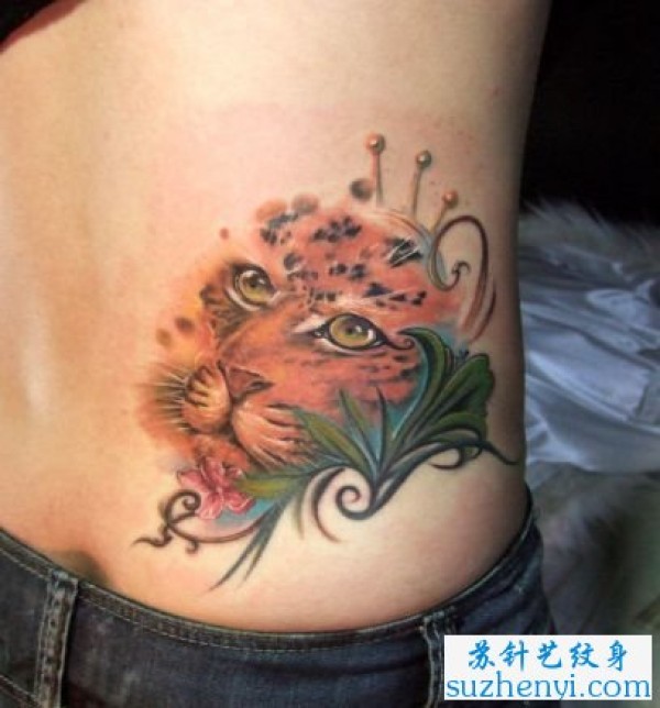 腰部彩色老虎头纹身图案纹身图片_腰部纹身图案大全_纹身图吧