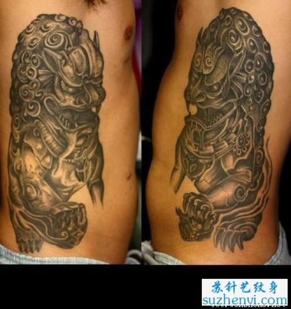 腰部石狮子纹身_腰部纹身图案大全_纹身图吧