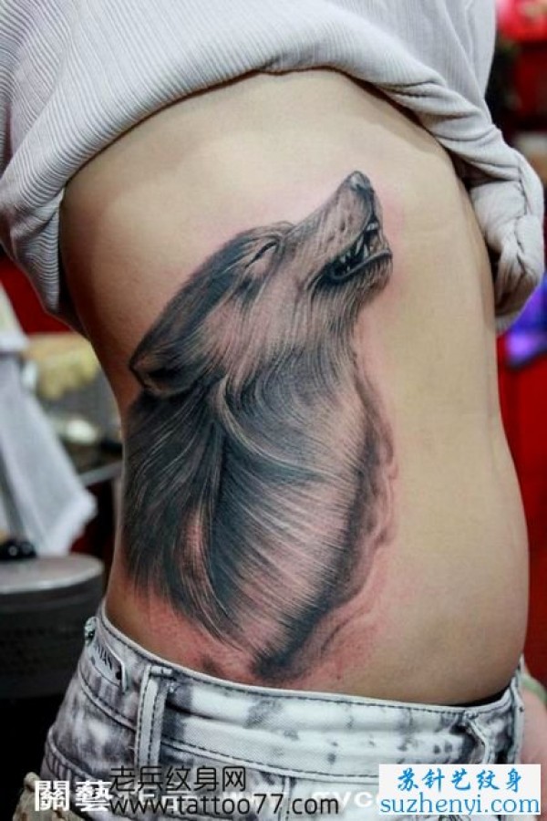 超帅气的美女腰部狼头_腰部纹身图案大全_纹身图吧