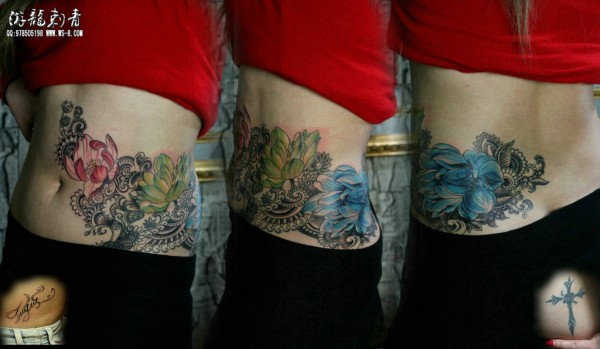 腰部莲花荷叶纹身图案纹身图片_腰部纹身图案大全_纹身图吧