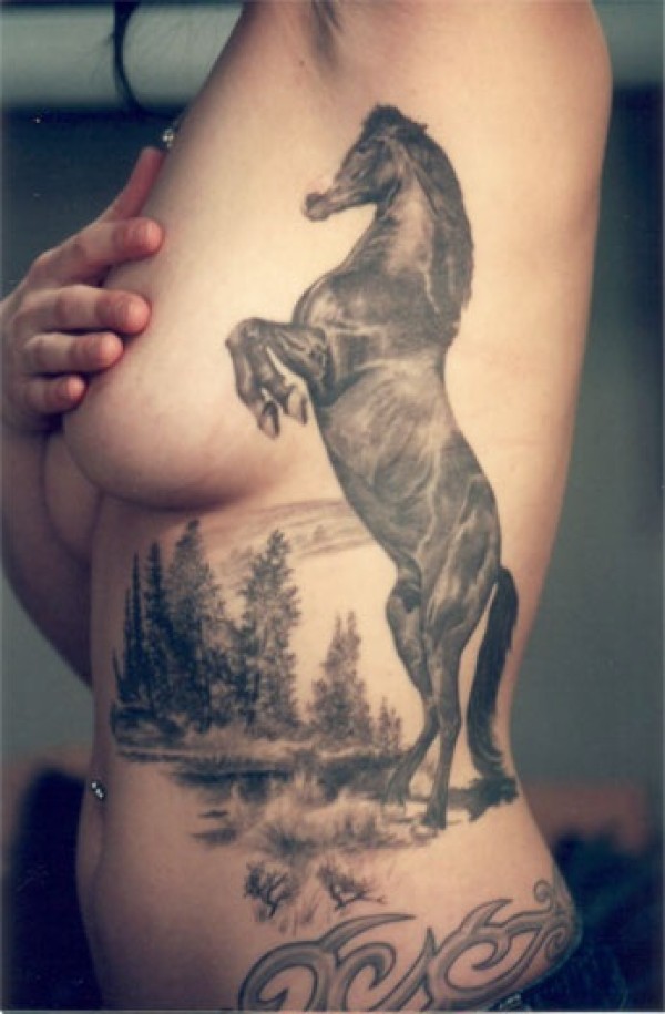 美女侧腰独角兽纹身_腰部纹身图案大全_纹身图吧