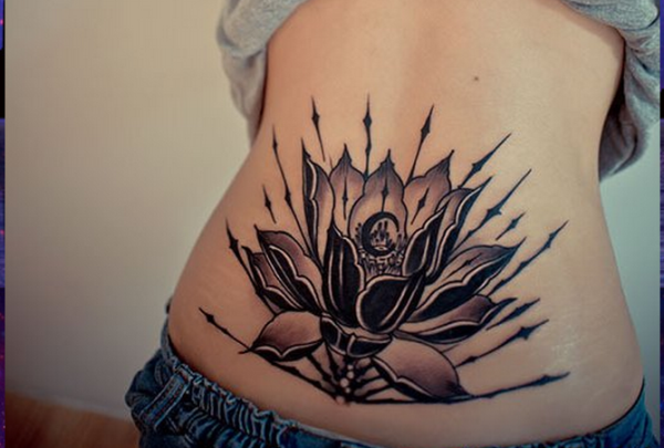 后腰创意黑莲花纹身纹身作品_腰部纹身图案大全_纹身图吧