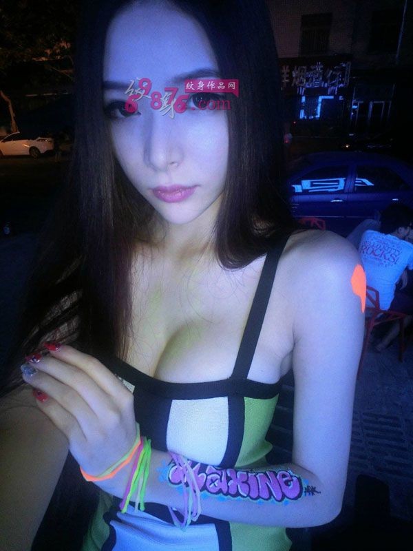 美女荧光色字母一次性纹身_荧光纹身图案大全_纹身图吧