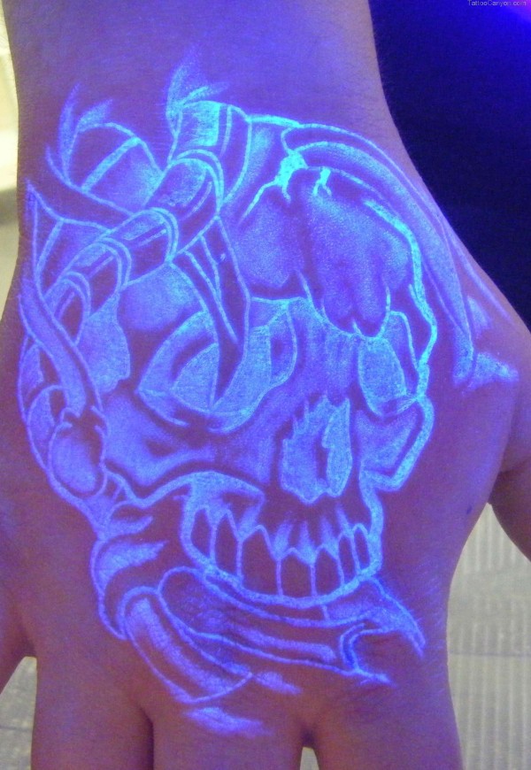 手背上的荧光骷髅头和字母_荧光纹身图案大全_纹身图吧