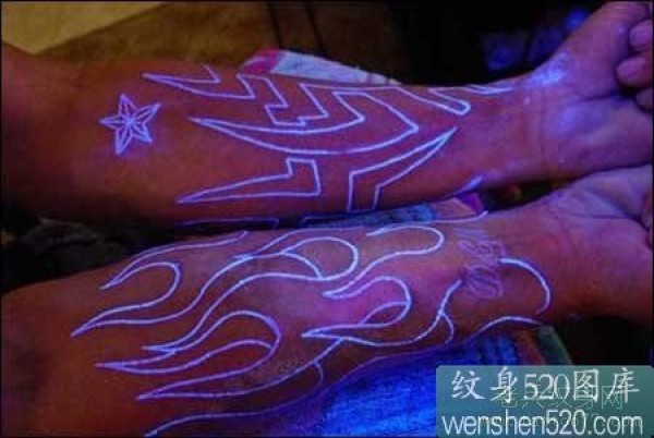 手臂上的荧光图腾纹身_荧光纹身图案大全_纹身图吧