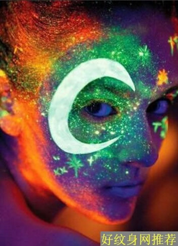 大发异彩的脸部荧光纹身作品_荧光纹身图案大全_纹身图吧