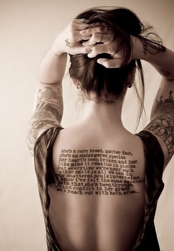独特美女背部英文纹身图片_英文纹身图案大全_纹身图吧