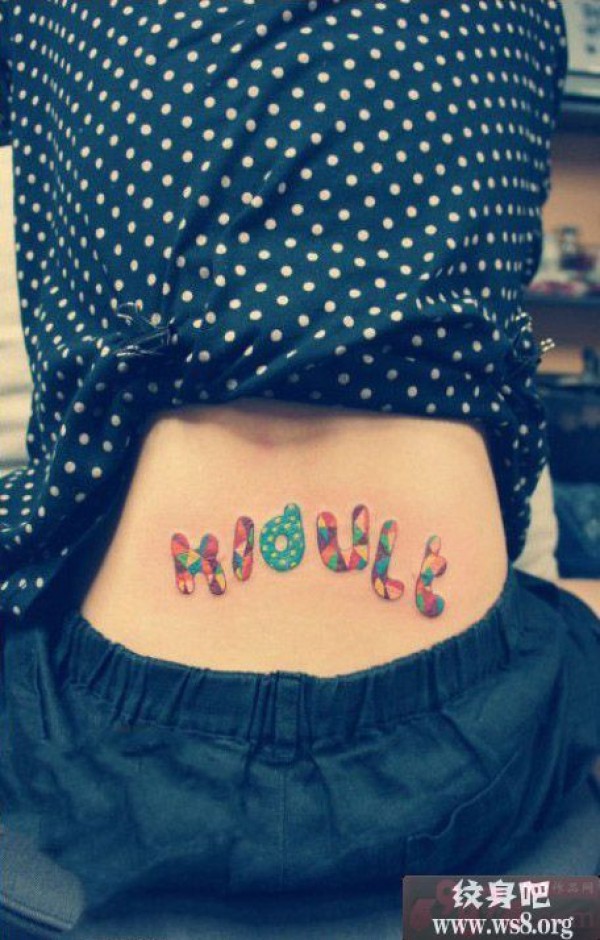 后腰上的卡通色katongse英文字母_英文纹身图案大全_纹身图吧