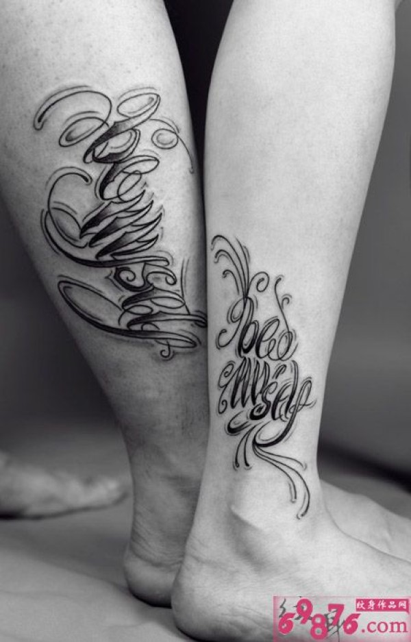 浪漫情侣小腿花体英文刺青_英文纹身图案大全_纹身图吧