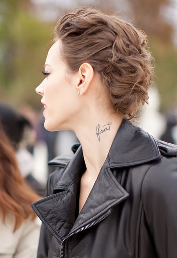 女人颈上随意时尚英文纹身图_英文纹身图案大全_纹身图吧