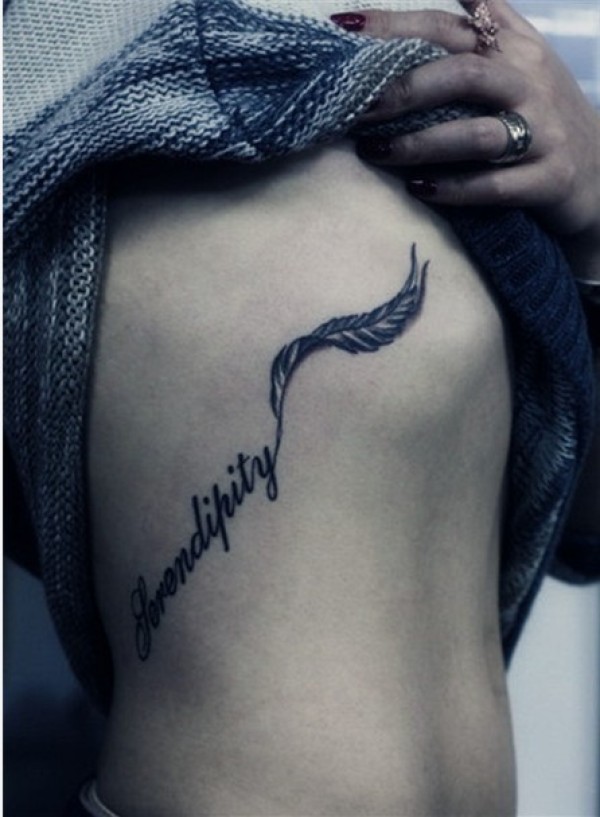 女性腰部羽毛英文独特漂亮刺青_英文纹身图案大全_纹身图吧