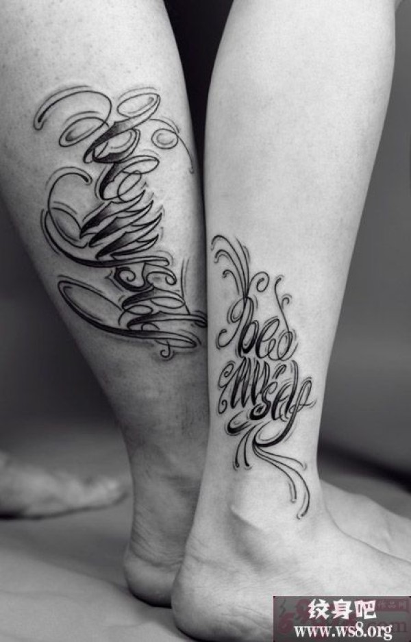 情侣小腿部唯美花体huatiyingwen英文_英文纹身图案大全_纹身图吧