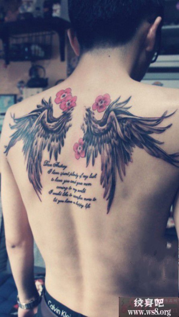 天使翅膀英文背部图案_英文纹身图案大全_纹身图吧