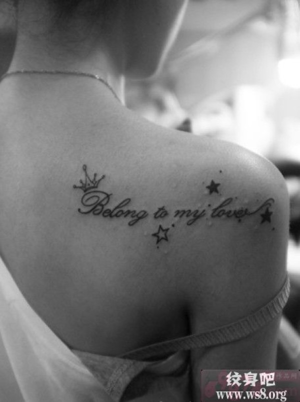 后肩创意英文黑白纹身图案_英文纹身图案大全_纹身图吧